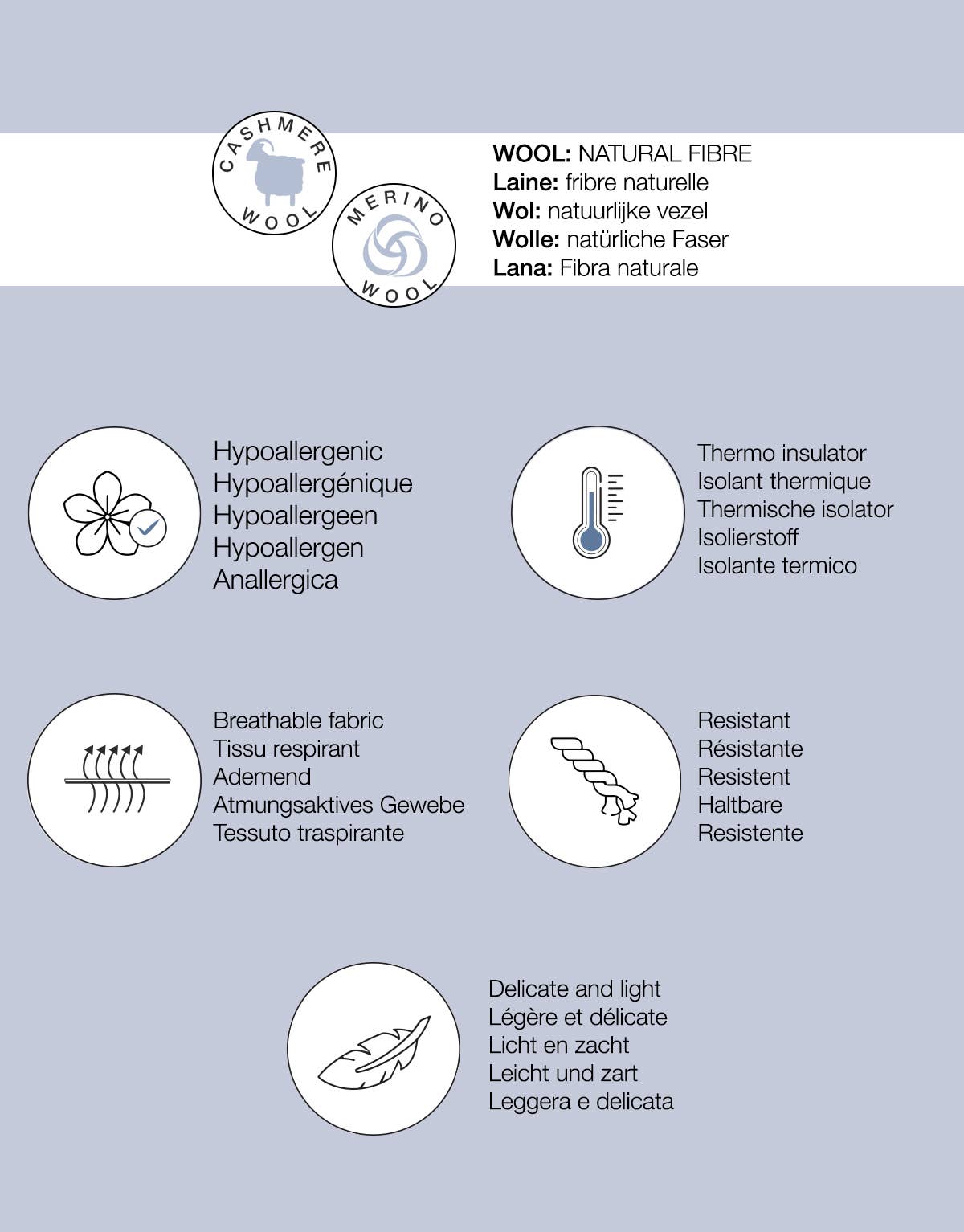Special Characteristics - Natural Fibre - Resistant - Thermo-insulator - Breathable