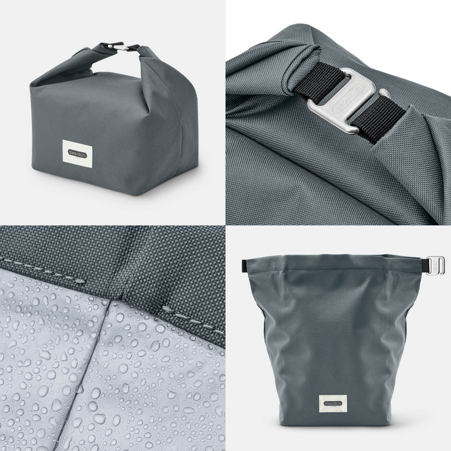 VERSATILE ROLL-UP STRAP - The travel lunch box has a unique roll-top and steel G-hook closure that makes it possible for the bag to adapt to the height of the volume inside. Easily roll up, strap it to bags or bicycle handlebars, or simply carry it with style