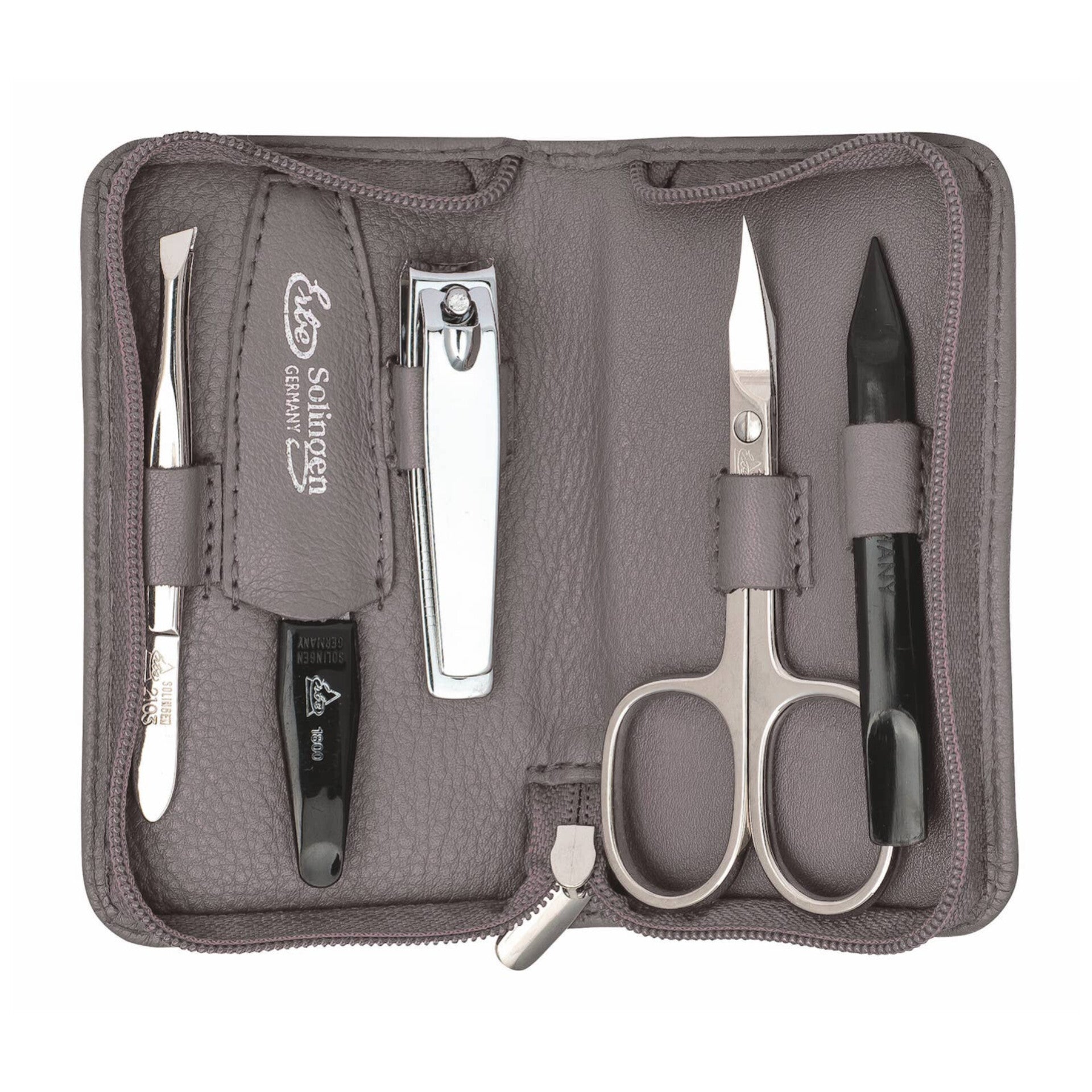 ERBE Manicure Set Pocket Case Series "Siena" in Grey Leather Case.