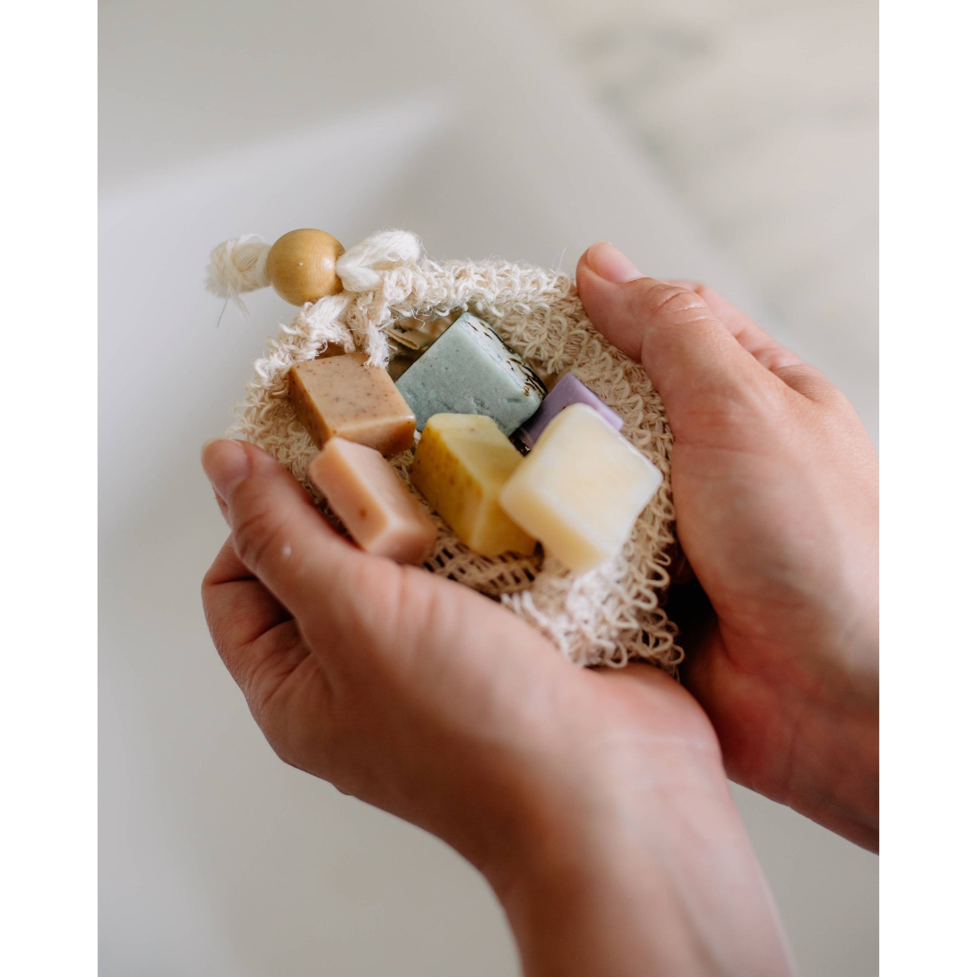 The best storage for shampoo bars and solid soaps: our sisal soap bags. Thanks to the cord, the soap bag can be easily hung in the shower or bathtub. This allows excess water to drain, and your soap can dry. If you lather the soap in the bag, you can enjoy a massage or exfoliate your skin and stimulate circulation. Made from the natural fiber sisal, which is obtained from the leaves of the agave, the soap bags are vegan, environmentally friendly, and completely biodegradable. To remove soap residues, the soap bags can be easily washed by hand or in the machine.