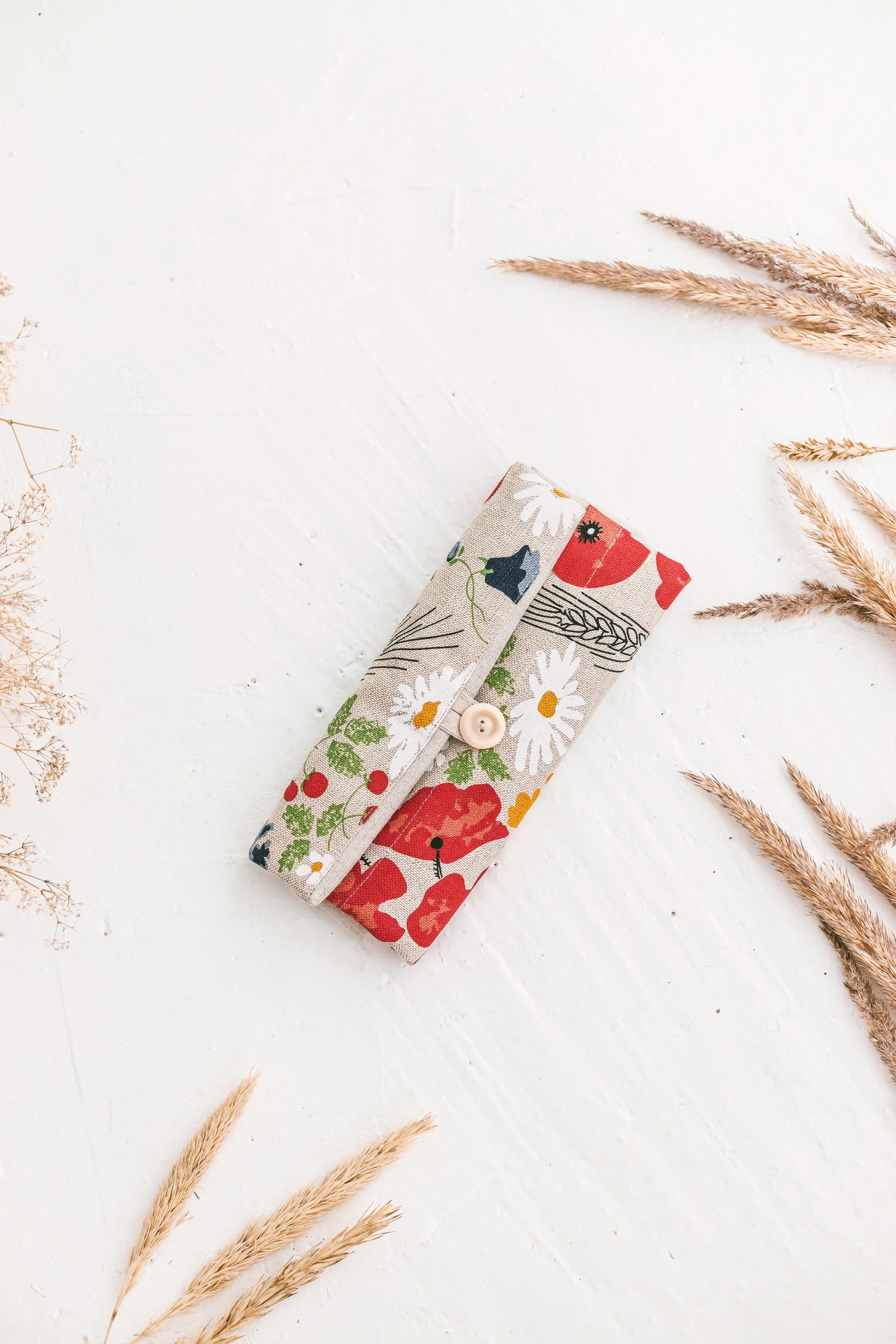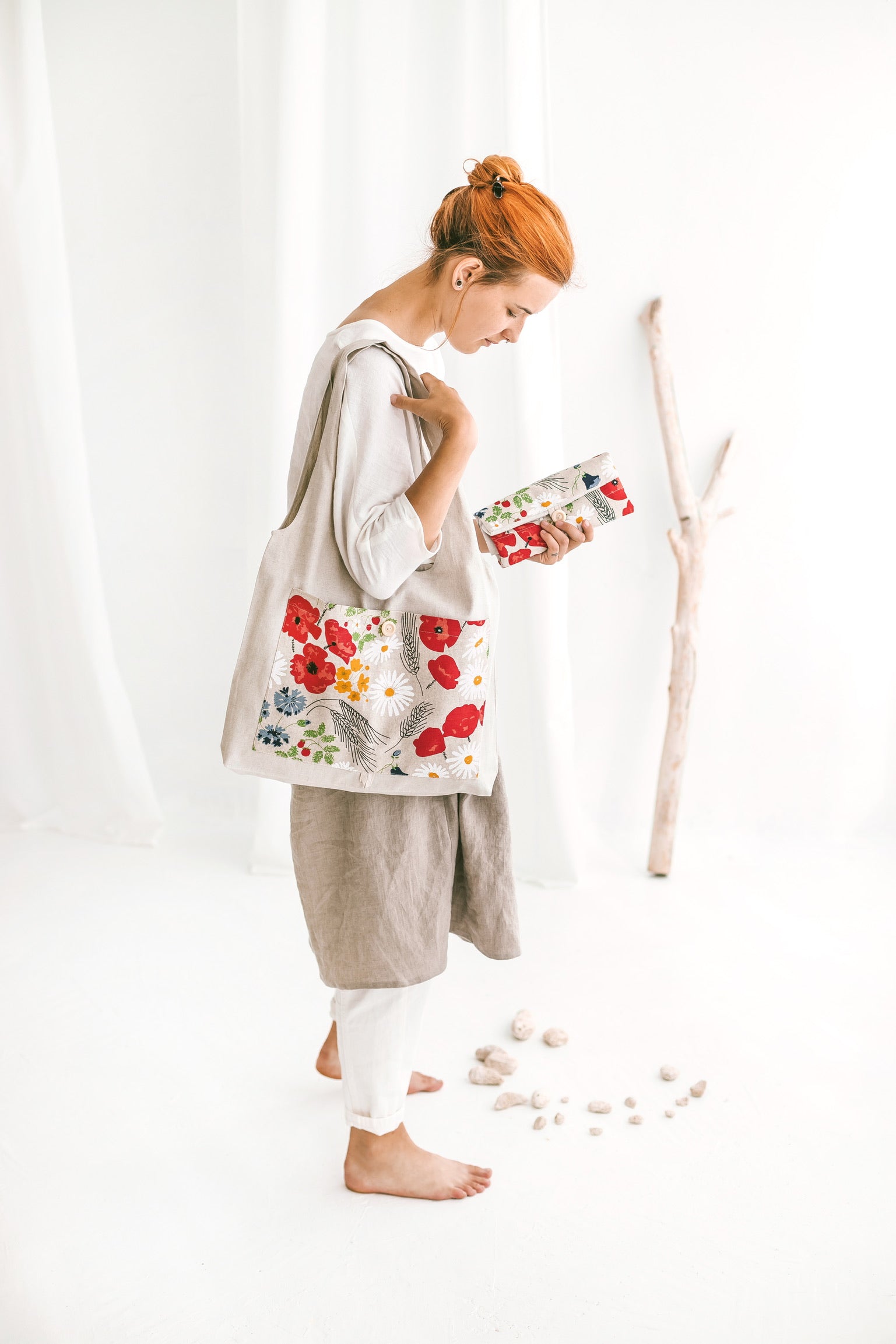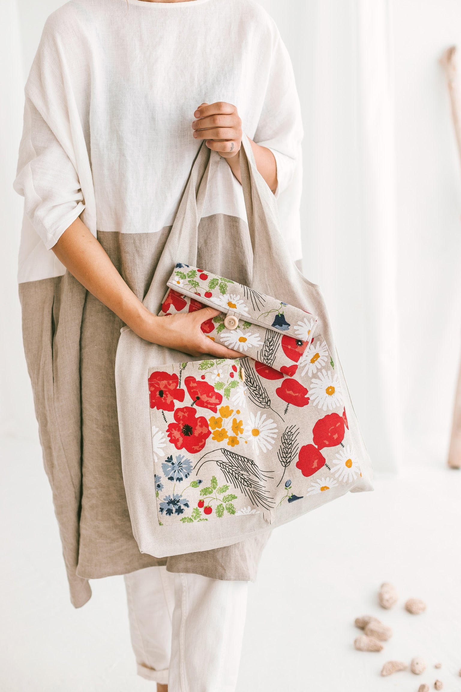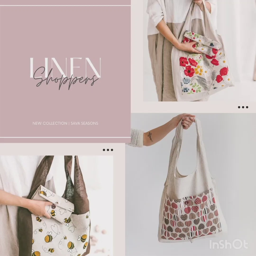 Linen Reusable Shopping Bag • Foldable Tote with Wild Flowers by SaVa Seasons
