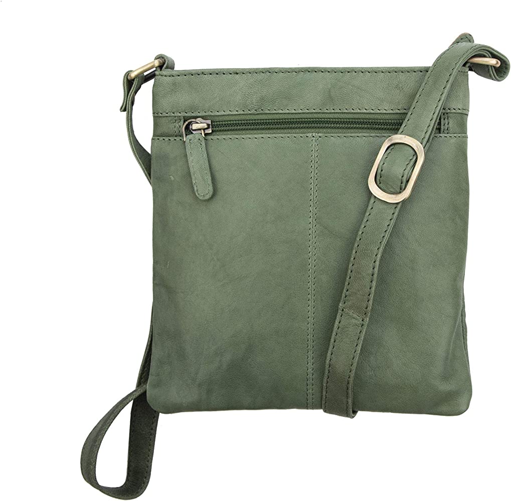 PrimeHide Women's Real Leather Crumble Style Crossbody Handbag - 6550