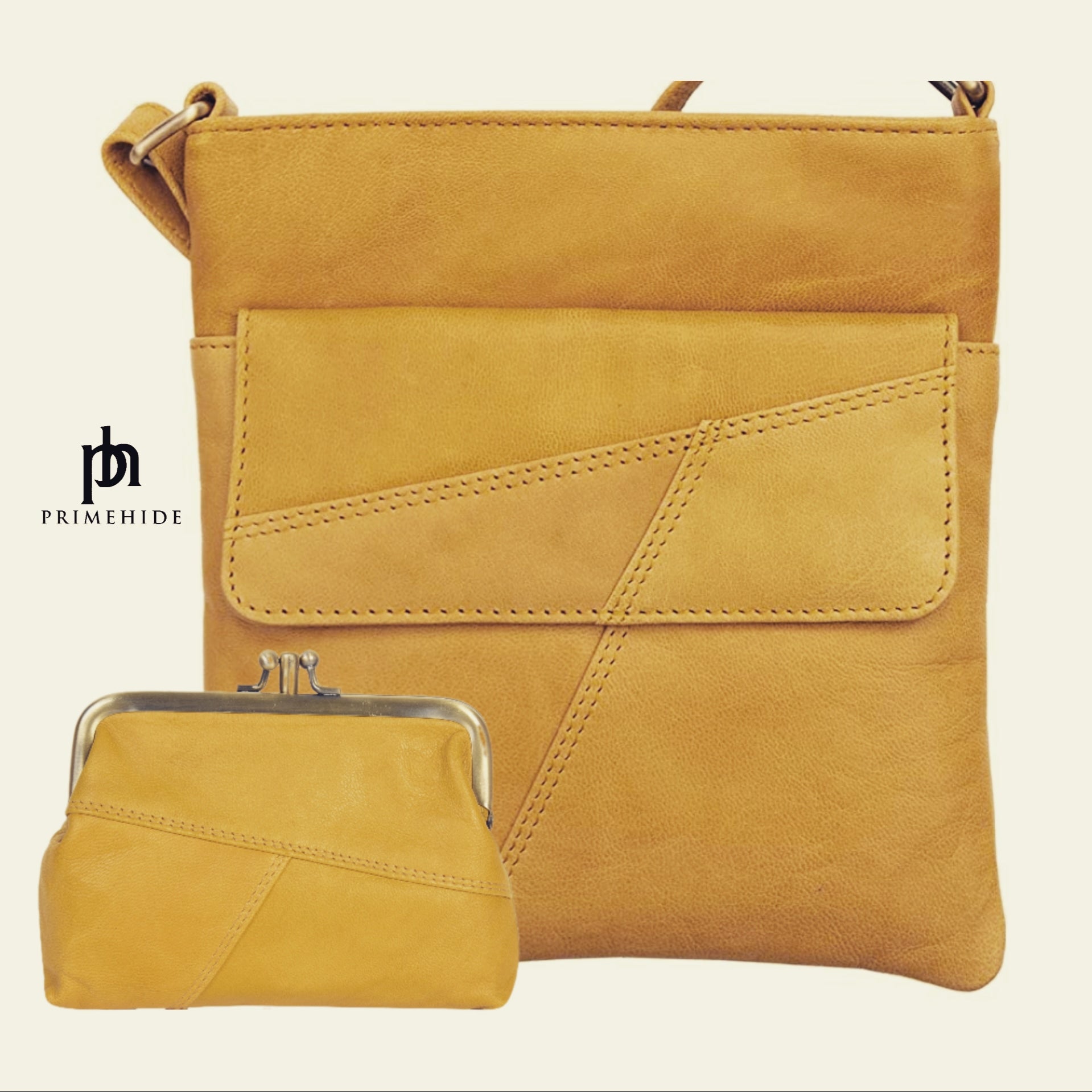 Crumble Crossbody Handbag (6550) in Mustard | Real Leather