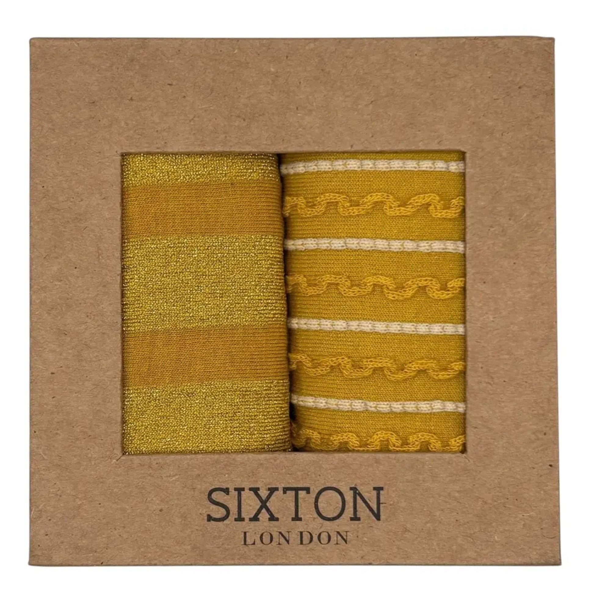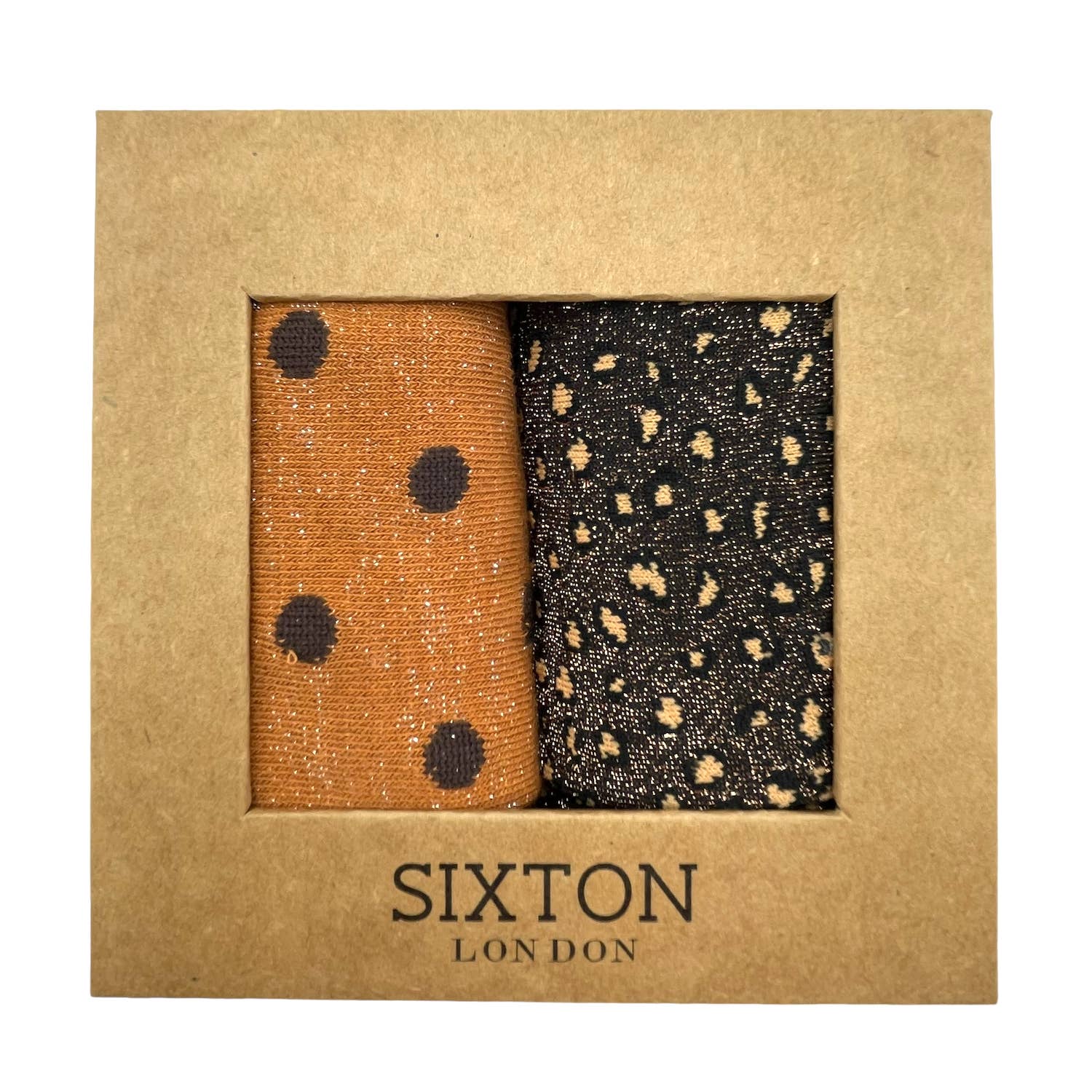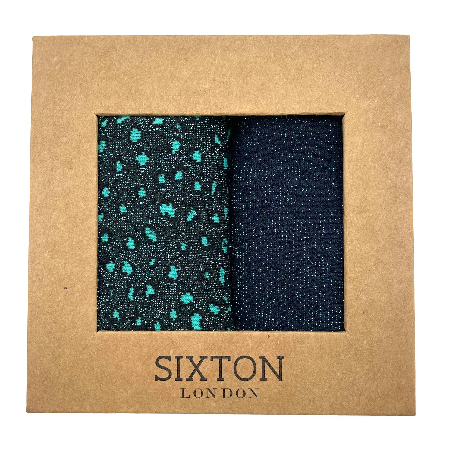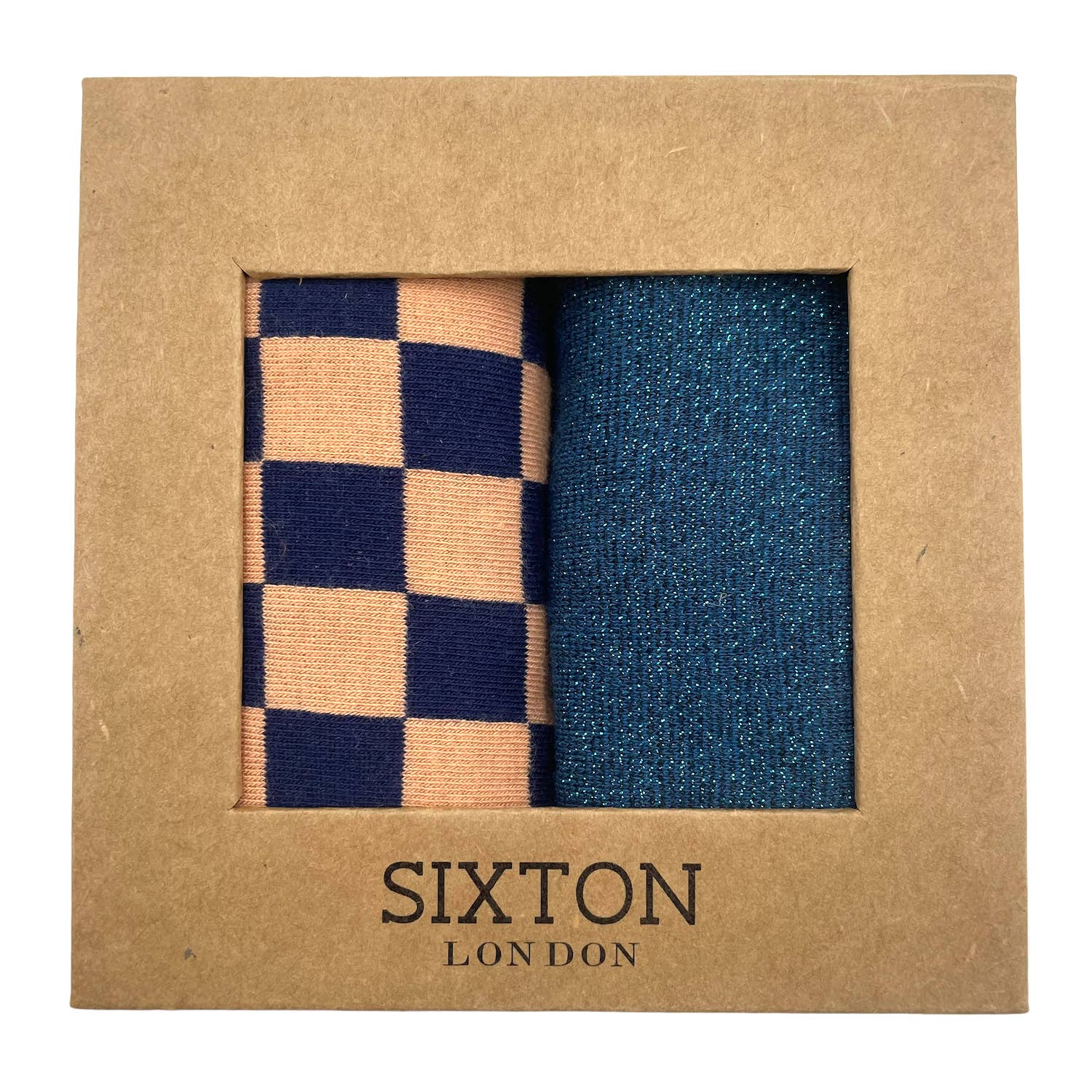 A duo of socks in a box. These are sold as a mixed set - they won't be exactly the combination shown.