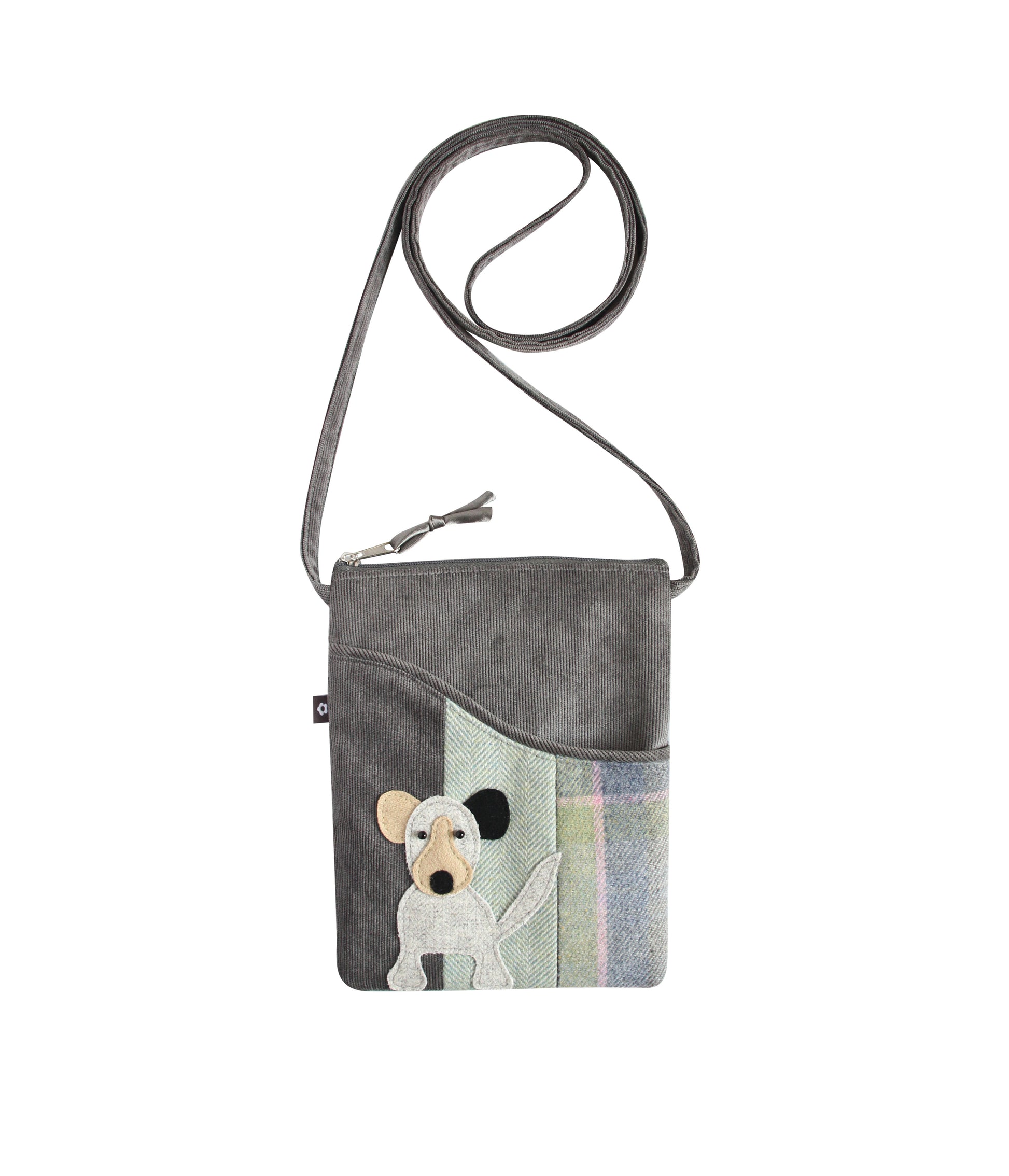 TWEED APPLIQUE SLING BAG by Earth Squared. Fun and funky little Cross Body Bag with animal or floral appliqué detail. Beautiful soft tweed and corduroy fabric. Zipped secure inner section with satin lining and slip pocket at front. Perfect gift for friends or family.