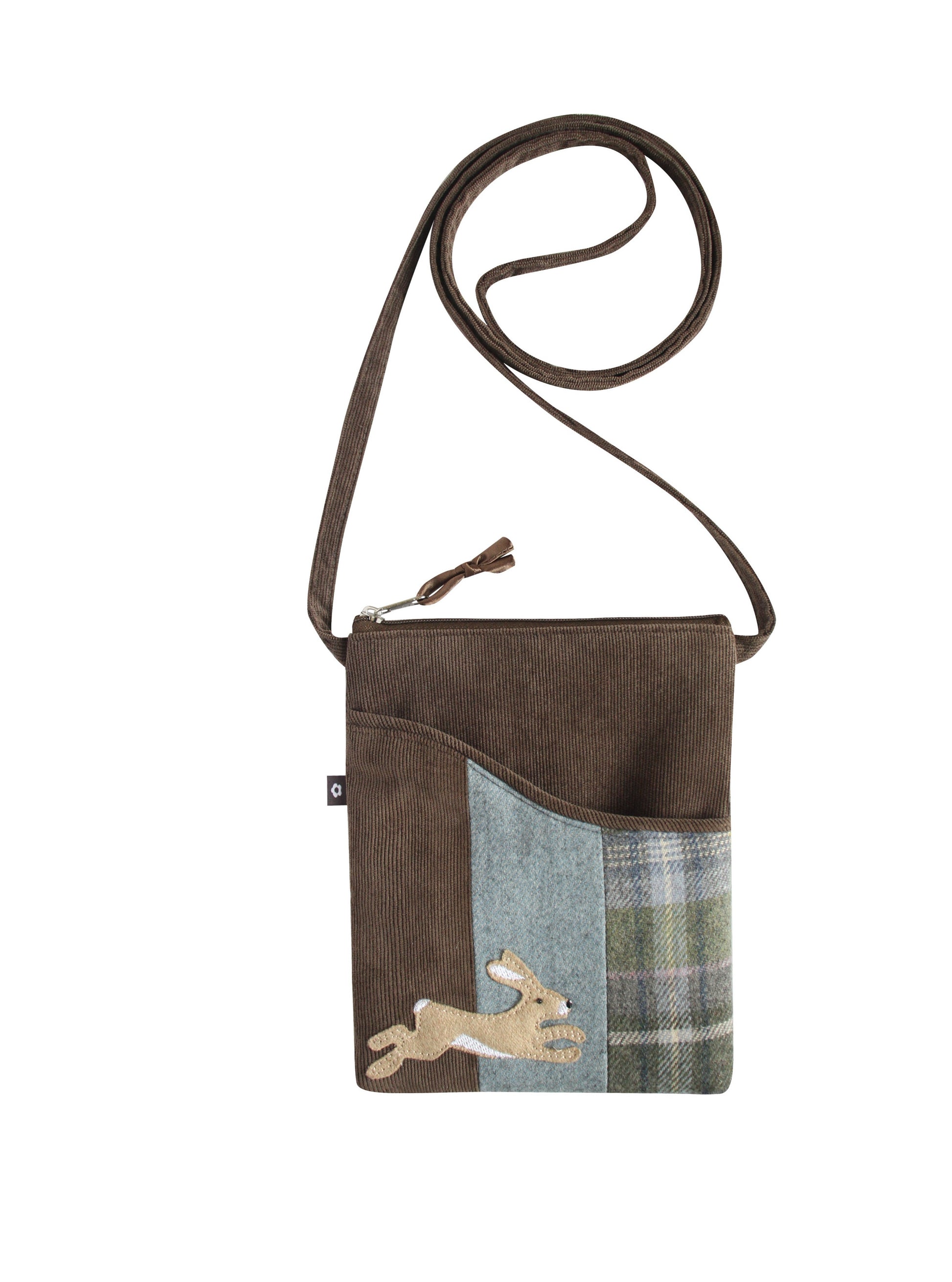 TWEED APPLIQUE SLING CROSS BODY BAG by EARTH SQUARED with SEACLIFF TWEED HARE MOTIF