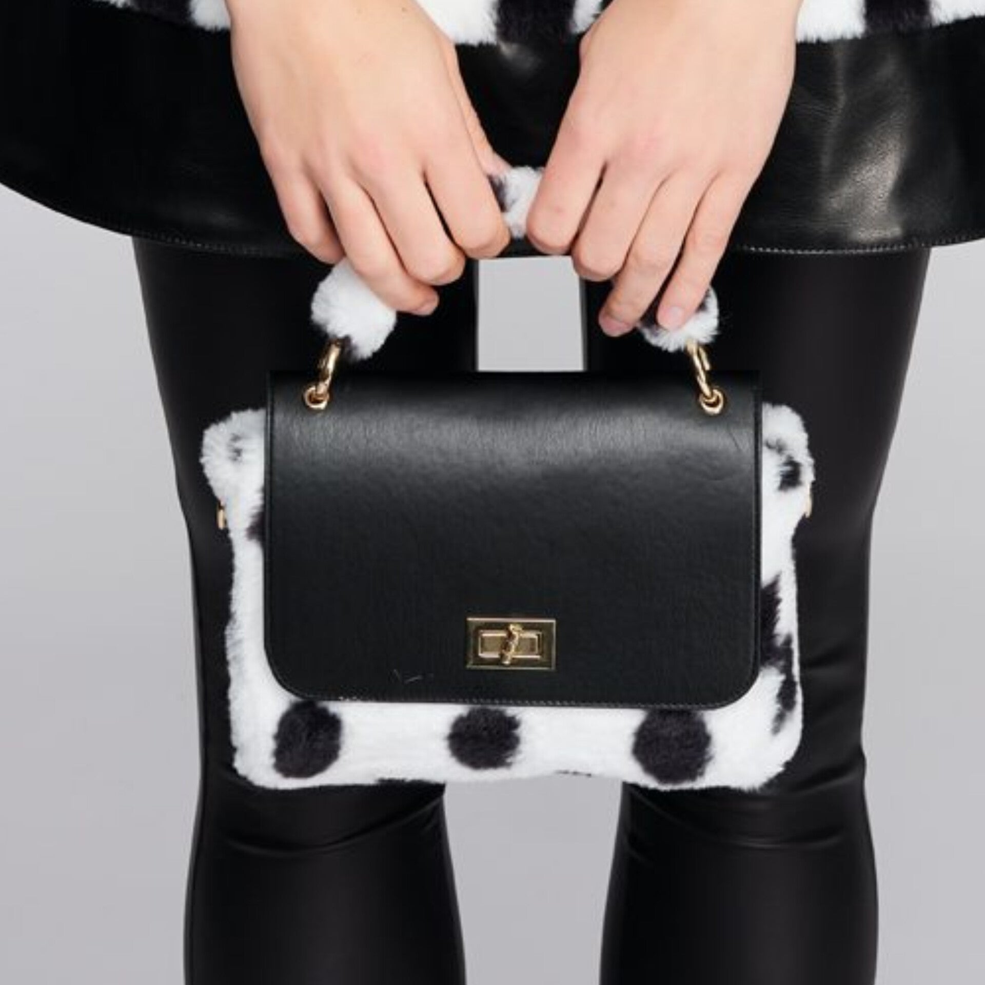 The Dasha Bag - Faux Fur Handbag in Black & White Polka Dot Style